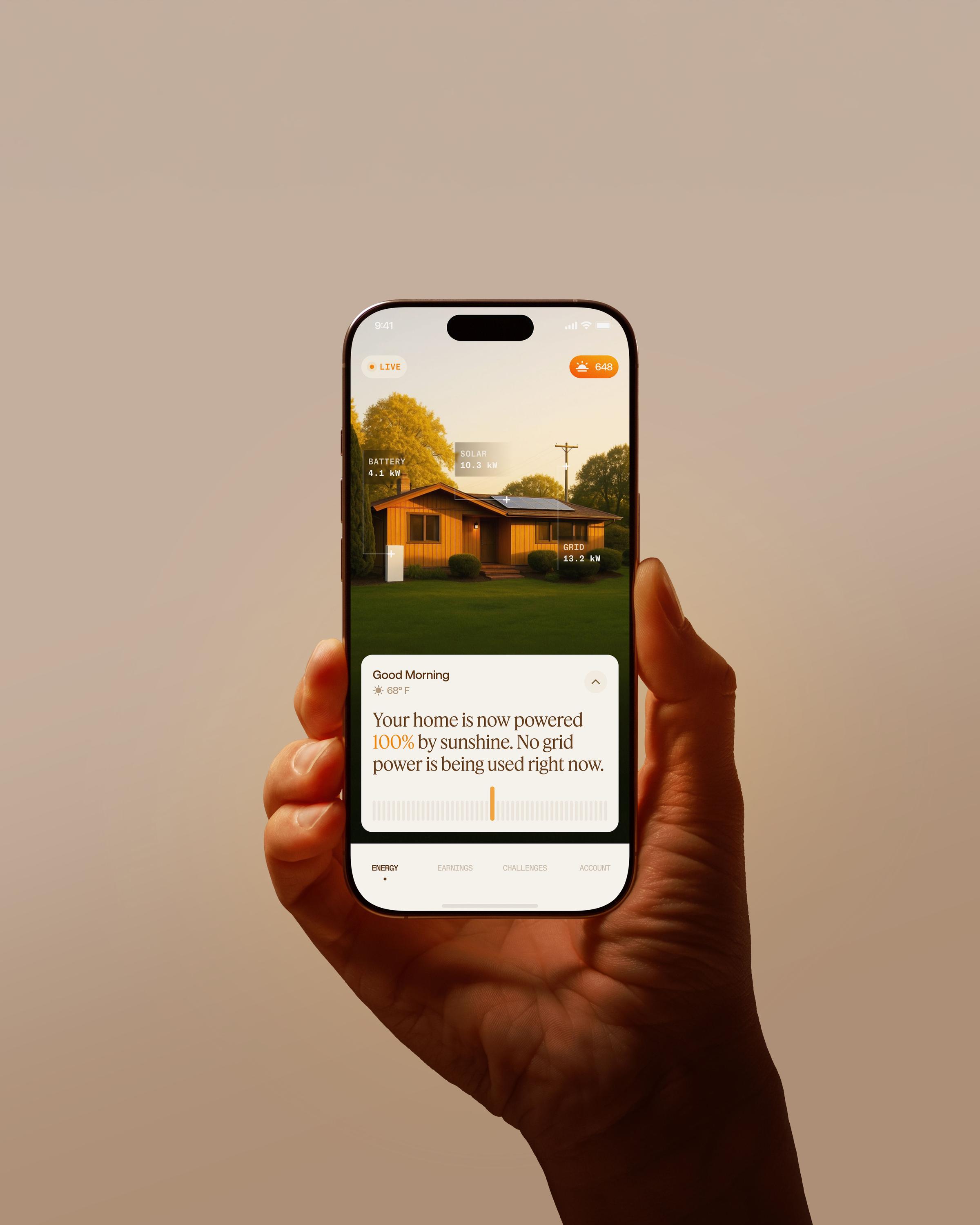 Excess energy is traded with the grid through your battery. You stay powered during outages and earn rewards just by being part of the network.